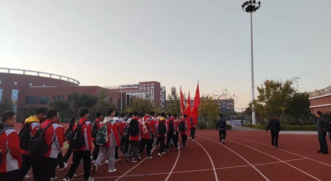 晨光洒落,秋日明朗。高三年级的同学们兴致勃勃,早早齐聚操场,做好了出发的准备。